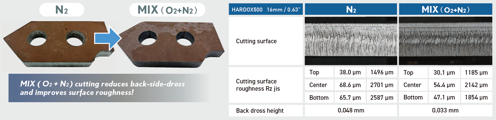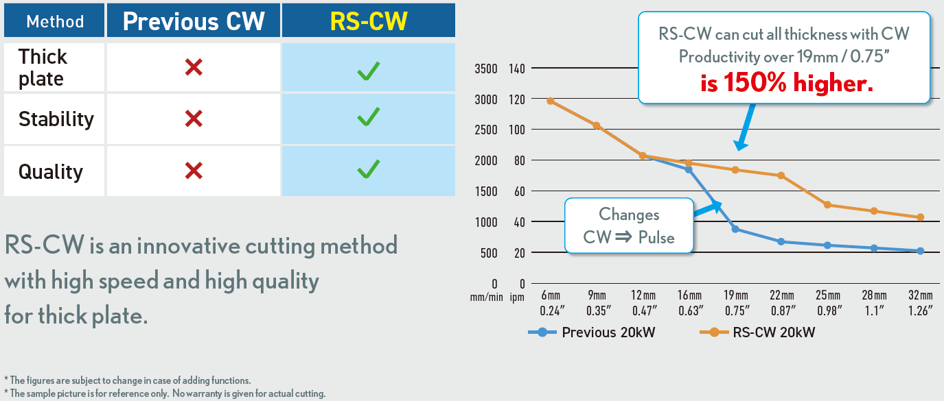 New beam mode: Greatly improved quality & cutting feed rate on stainless steel cuts